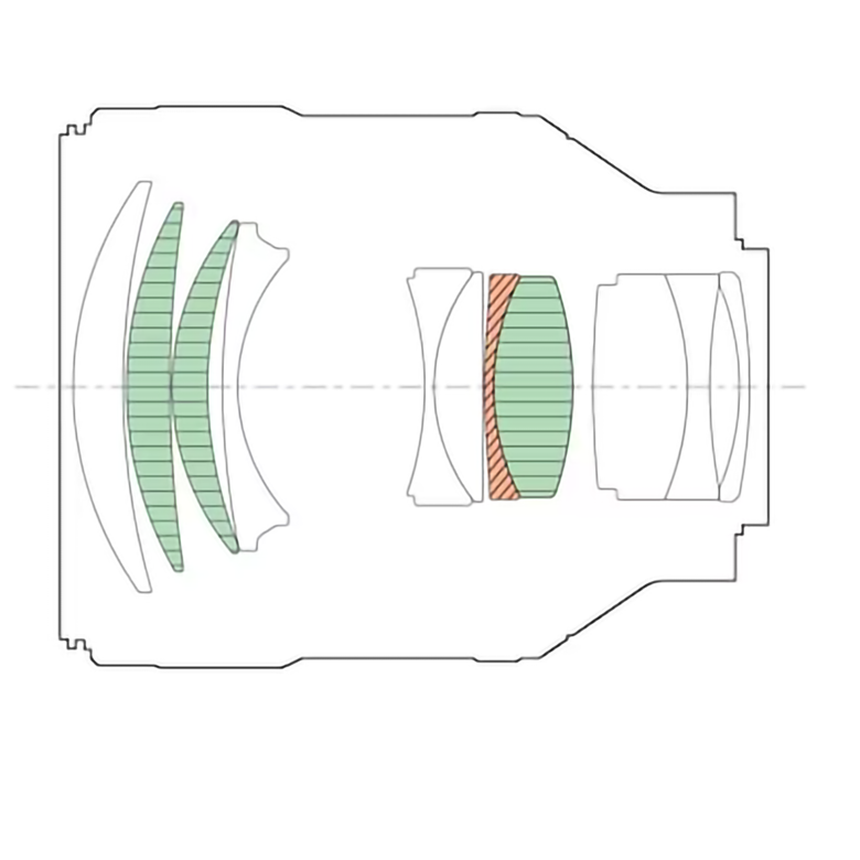 Thiết kế quang học kết hợp 3 thấu kính tắc sắc cực thấp giảm quang sai màu, một thấu kính phi cầu cực đại XA kiểm soát quang sai hình cầu, cho hình ảnh sắc nét, rõ ràng ở mức độ cao. Bên cạnh đó, lớp phủ Nano AR được áp dụng trên mỗi thấu kính nhằm hạn chế hiện tượng bóng mờ, lóa ống kính nhằm tăng độ tương phản, độ chân thực của màu sắc khi làm việc trong điều kiện thừa sáng.